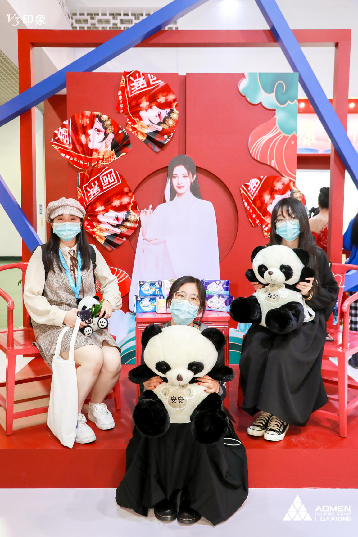 彩神集团展位的正红布景极具特色,吸引了众多国风爱好者前来打卡,不少汉服小仙女都被熊猫玩偶萌翻了,纷纷合影留念。