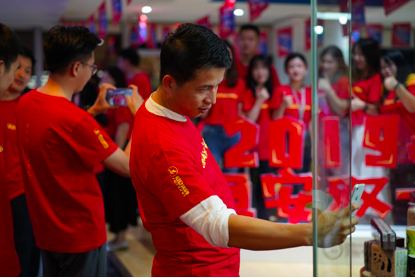 10号晚上电商办公室也组织了一场别具生面的“我在彩神双十一”文化活动为双十一销售助威,运营中心副总裁许清池,共享中心副总裁刘莹,女性健康产业发展部总裁许自淡等集团多位领导也赶赴现场,在零点时一同等待双十一销售拉开序幕。